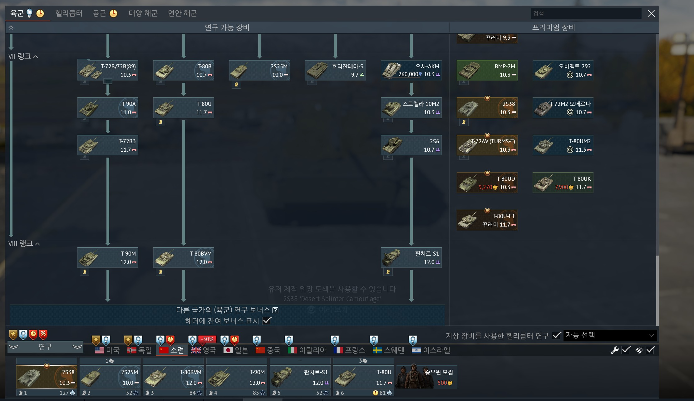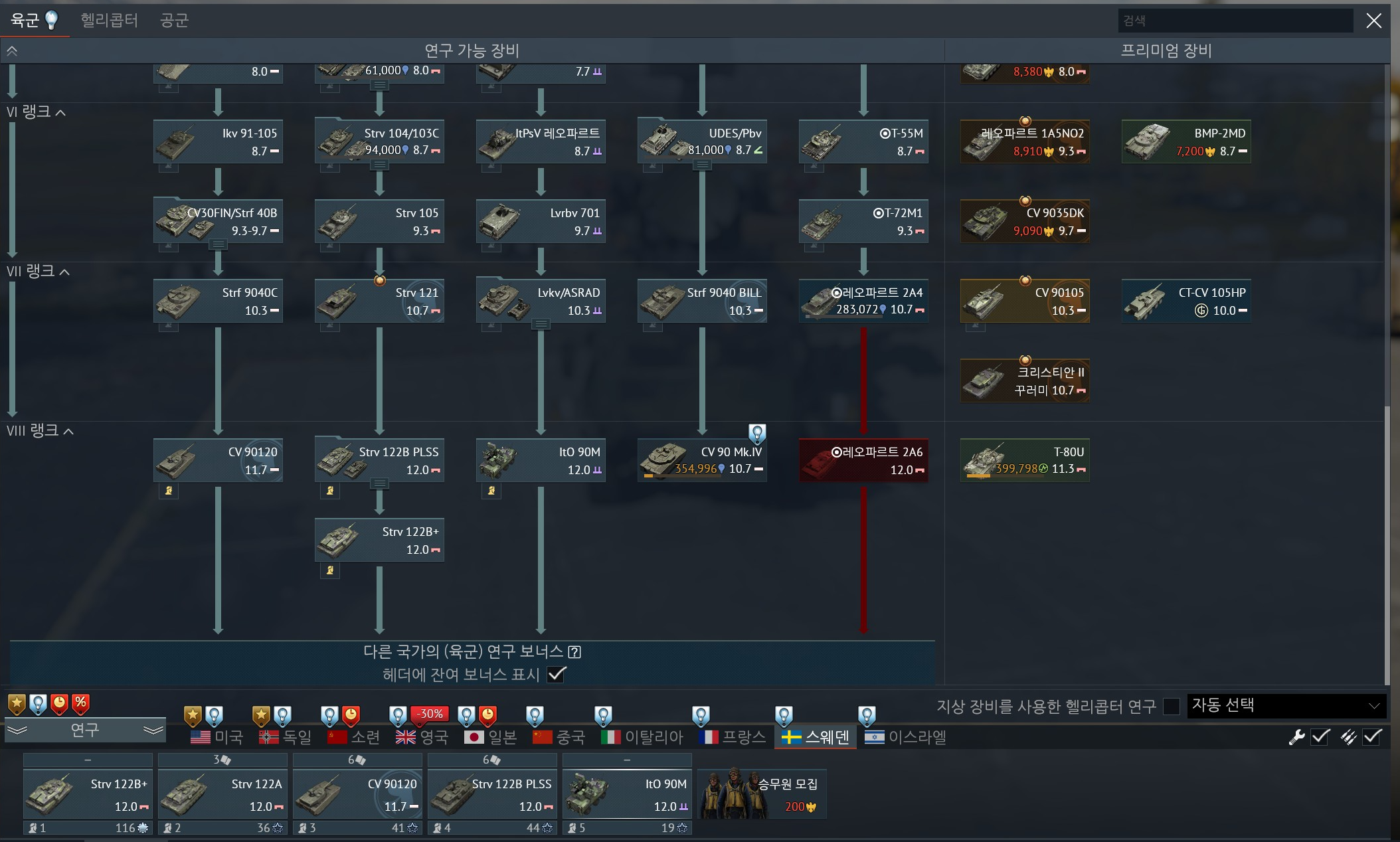 개인적으로 프리미엄 전차 없이 힘들었던 국가 였던것 같습니다.